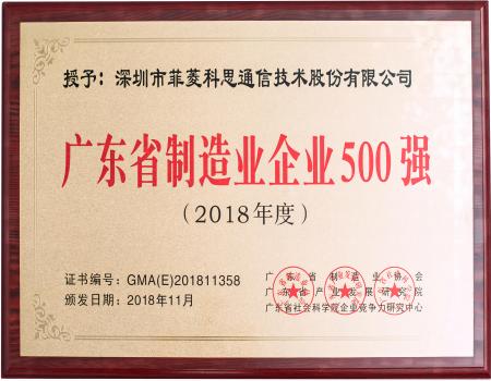 • 广东省制造业企业500强(2018年度)