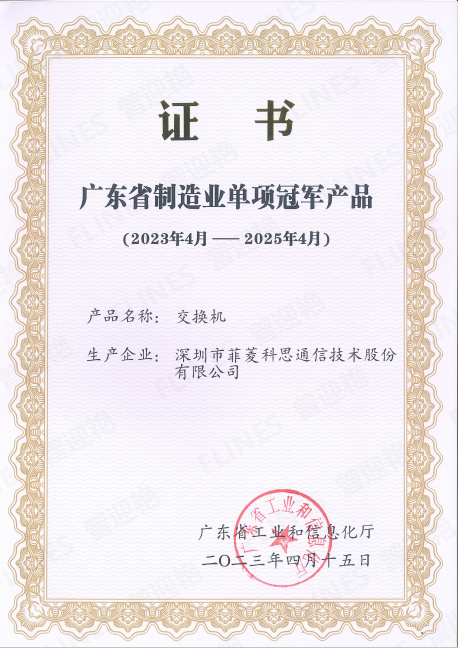 • 广东省制造业单项冠军产品证书